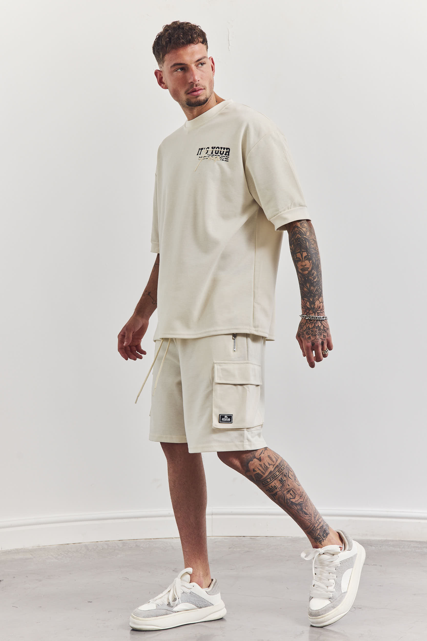 חליפת אופנה אוברסייז עם כיתוב עגול